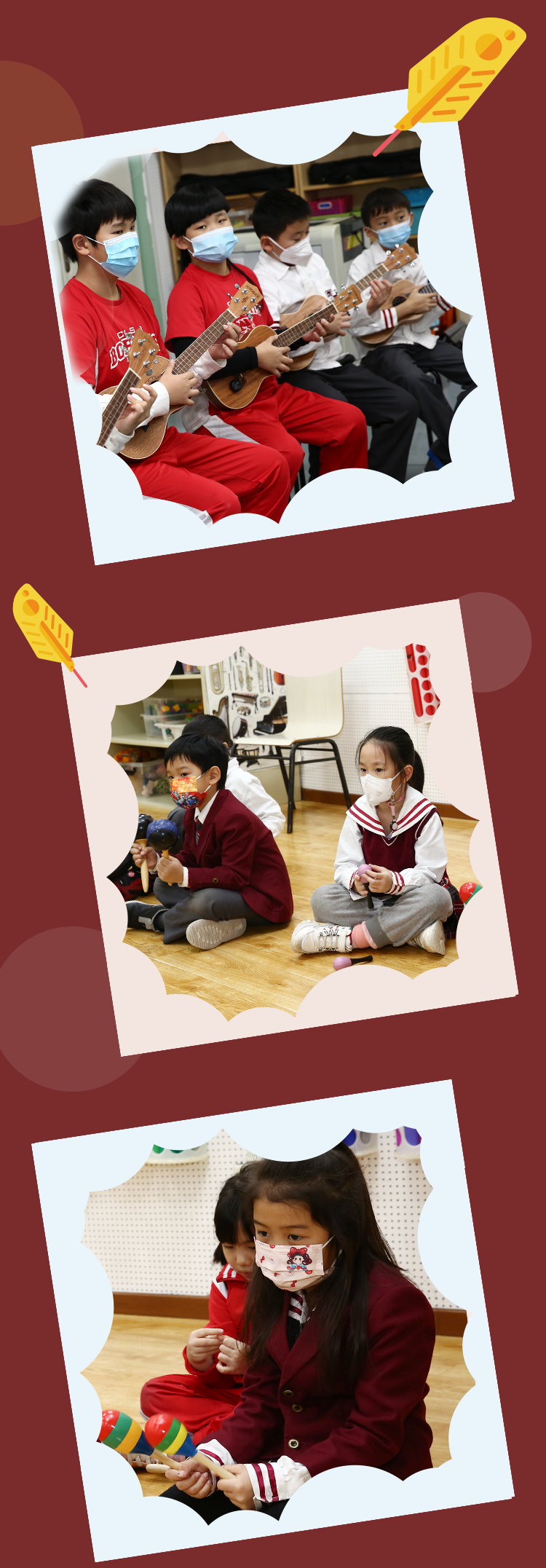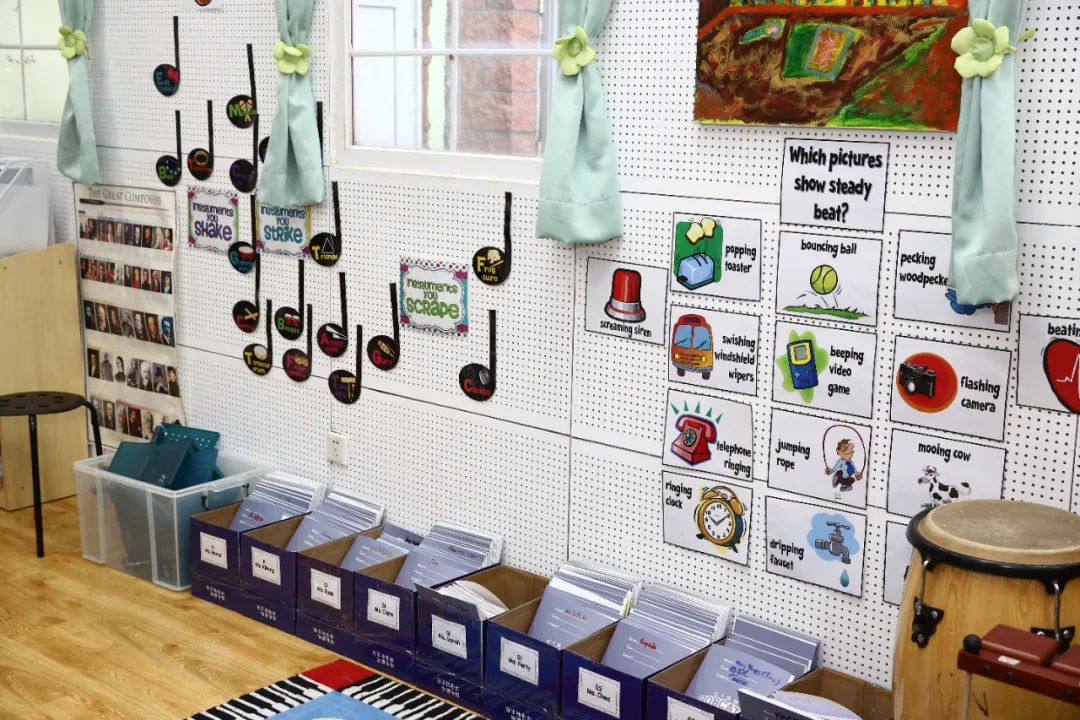 在CISB的音乐课堂上,提供各种乐器的基本教学,3年级的课程侧重于高音直笛,4年级的学生会在打击乐器上进行部分练习,5年级的学生学习如何用尤克里里进行基本的伴奏。