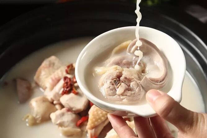 原汁原味的猪肚鸡汤,选用西班牙猪骨、金华火腿、南风肉等食材大火熬煮480分钟,搭配精选幸福猪肚,脆而厚实,鸡肉是90天的散养鸡,鸡肉软嫩口感细腻,之后加入海南白胡椒,一碗下肚,暖心暖胃。
