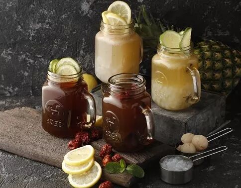 鲜果茶系列:优质四季青、红乌龙和茉莉绿茶,现点现萃,茶汤清澈,加上满满的新鲜水果,每一口都能喝到清新茶香和新鲜果香味已经把你包围了,赶快行动起来吧。