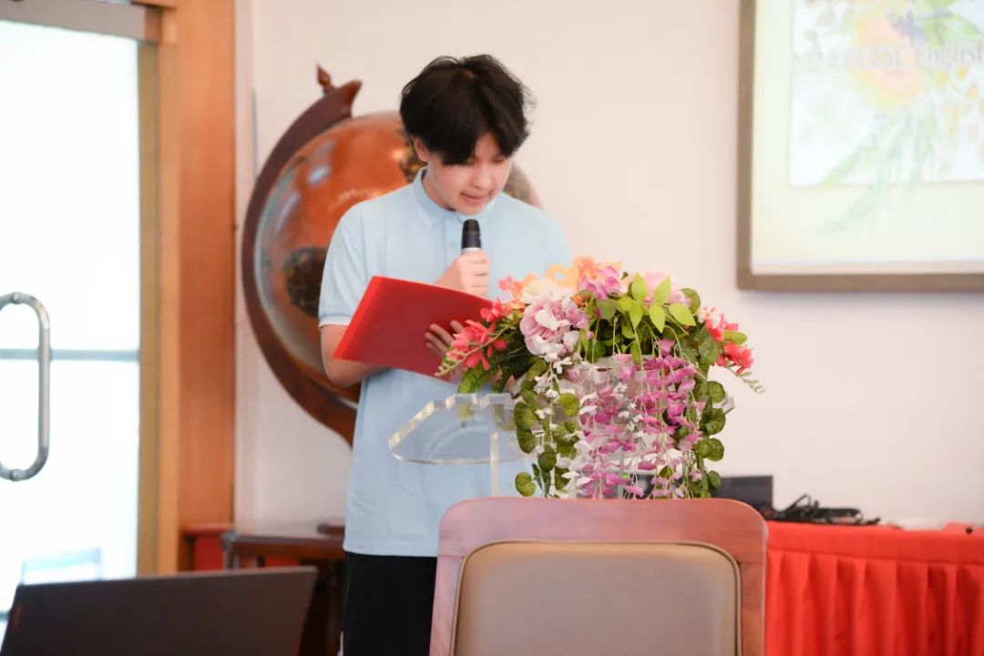 田振周执行校长致欢迎词。他鼓励大家在夏令营中,要勤奋学习,通过体验新课程,拓宽知识面,提升相关技能,并挑战自我取得成就,逐渐建立起自信心,进而认识到自己的能力和价值。同时,田振周执行校长表示:在相互交流、合作完成任务和活动中,对同学们诚信社交与团队协作能力培养有着重要的意义。