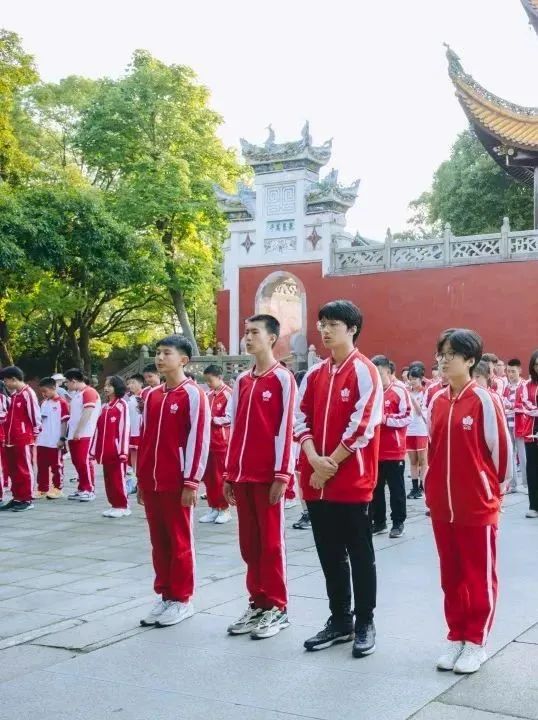 岳阳楼下,同学们列队而立,凝心神,正衣冠,齐声高诵《岳阳楼记》“衔远山,吞长江;浩浩汤汤,横无际涯;朝晖夕阳,气象万千…..其必曰:先天下之忧而忧,后天下之乐而乐。”字字句句、抑扬顿挫,入情入境,心生忧乐情,渐起慷慨意,令众多游客驻足观望。
