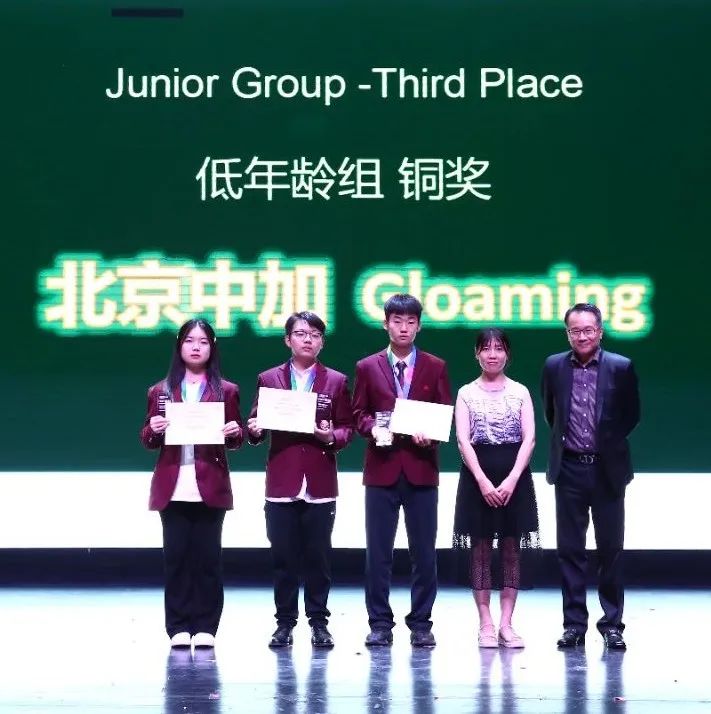 在今年6月29日至7月1日期间,“毅伟商赛”总决赛在北京加拿大国际学校举行。北京中加学校有两个代表队进入决赛,经过激烈角逐,分别获得低年级组第三名和高年级组第三名的优异成绩,以及AKD商业“菁英奖”。