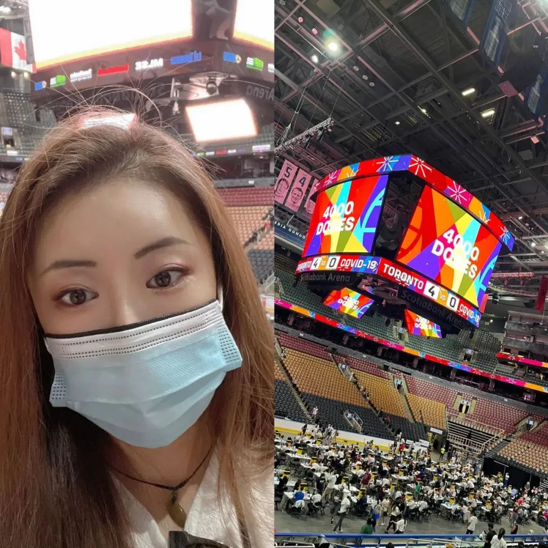 新冠疫情期间,她还积极参与了在多伦多downtown的Scotiabank Arena体育馆举办的疫苗接种的志愿服务。