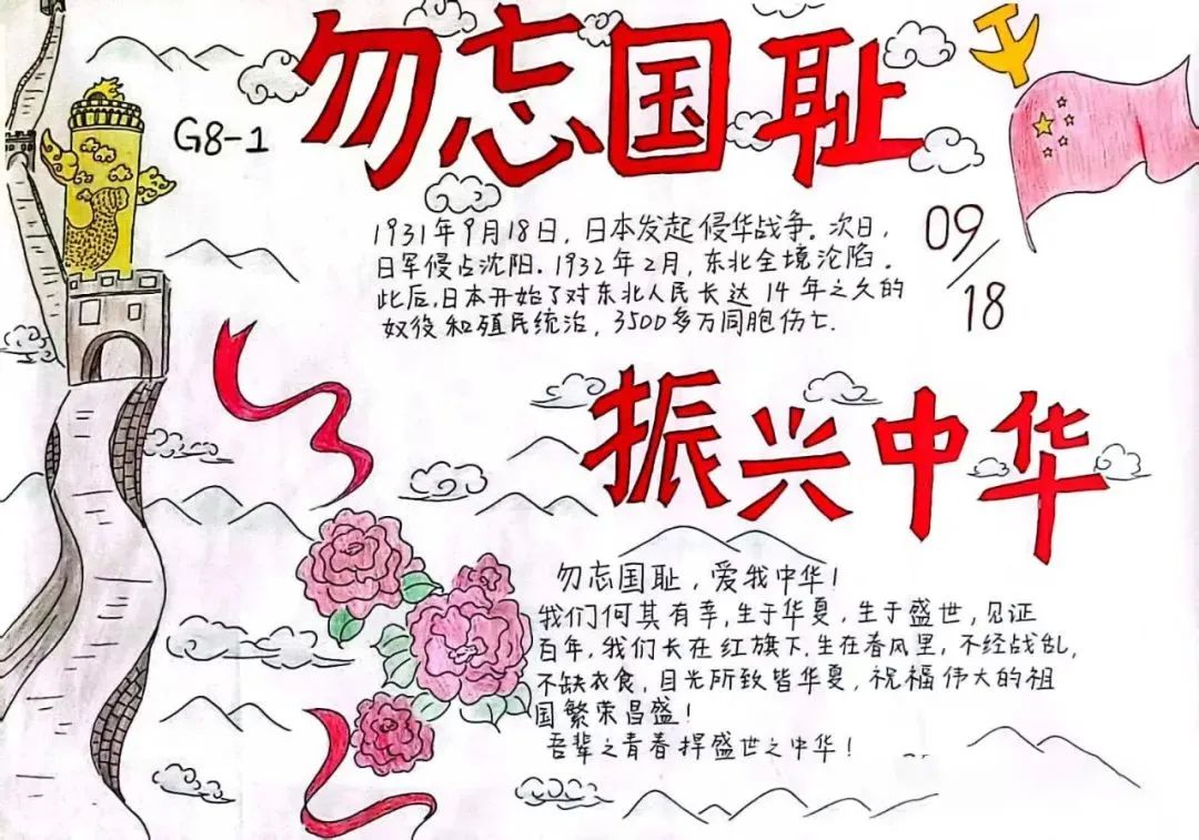 本次纪念活动共有三个环节,首先是“铭记9.18”主题队会、组织生活会。在这些主题会上,同学们重温了“九一八”事变的背景、经过和影响,各班通过讲抗日故事、观看爱国主义教育影片、主题演讲等形式,让同学们更多地了解中华民族的屈辱历史,珍惜今天来之不易的幸福生活;其次,是团委组织开展《勿忘国殇,吾辈自强》国旗下演讲及《铭记9.18》主题板报评比活动;在中学部,各班利用班会时间组织学生观看“九一八”纪实,组织了解历史真相,珍惜当下幸福的主题讨论。