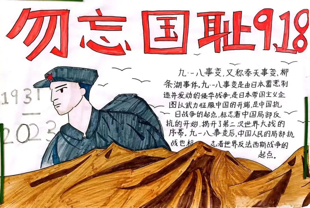 1931年9月18日,日本帝国主义发动了蓄谋已久的侵略战争,东北三省沦为日本帝国主义的殖民地。92年过去了,历史我们从未忘记。通过此主题教育活动的开展,使全体少先队员受到了深刻的爱国主义教育和思想洗礼,激发了爱国热情,弘扬了民族精神,增强了少先队员们的爱国情怀。同时,这些主题活动也让学生们多角度、更全面的铭记历史,让爱国的信念在同学们心中生根发芽,激励大家勿忘国耻、珍爱和平。