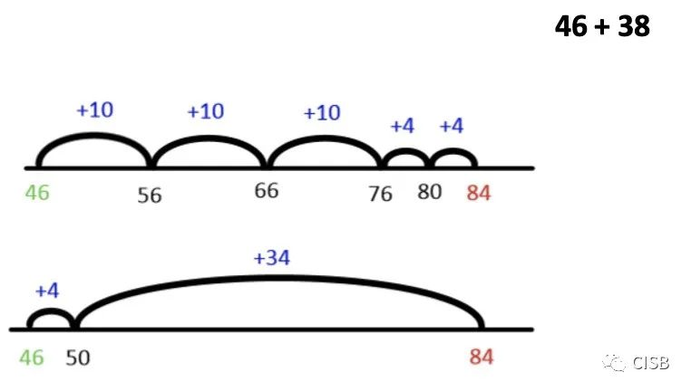 拆分:这种方法以更容易计算的方式拆分和合并数字。它能确保学生思考数字的价值。跳转:这种方法包括在一个开放的数字行上按顺序“跳转”,跳转到使操作更容易的数字。使用数列可以让学生把数字相加时,不容易出现计算错误。