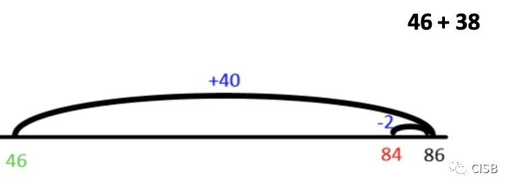 补偿法:有时加得太多再减去多余的会让运算更有快速。在这种情况下,学生将40和46相加得到86,然后减去2得到84。