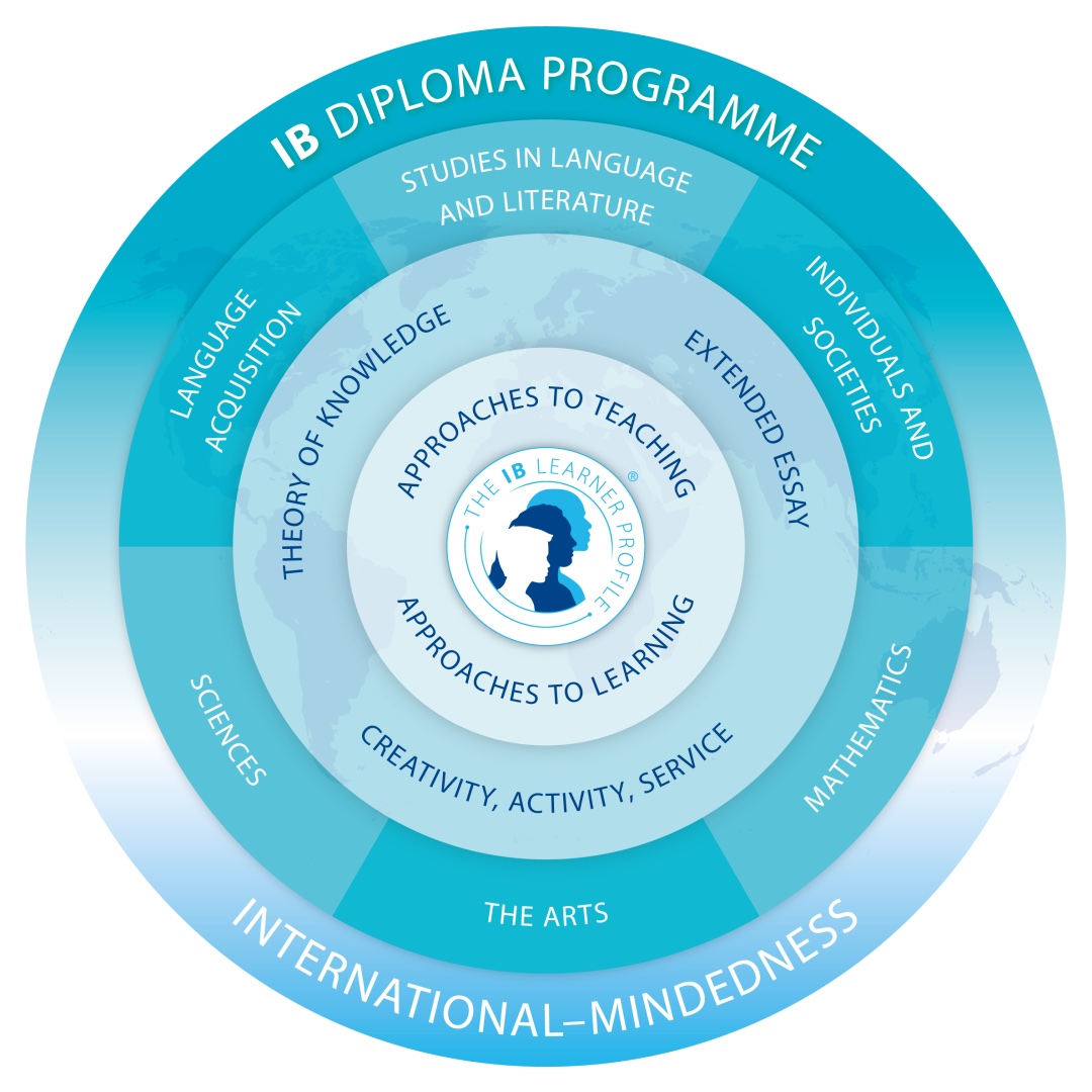 每个科目都由具体的课程目标、教学方法和评估模式来定义。除了六个科目组合外,学生还需要参与由知识理论(TOK)、扩展论文(EE)和创意、活动和服务(CAS)组成的核心课程。通过核心课程的学习经历,他们能够发展自己的IB学习者特征和技能。