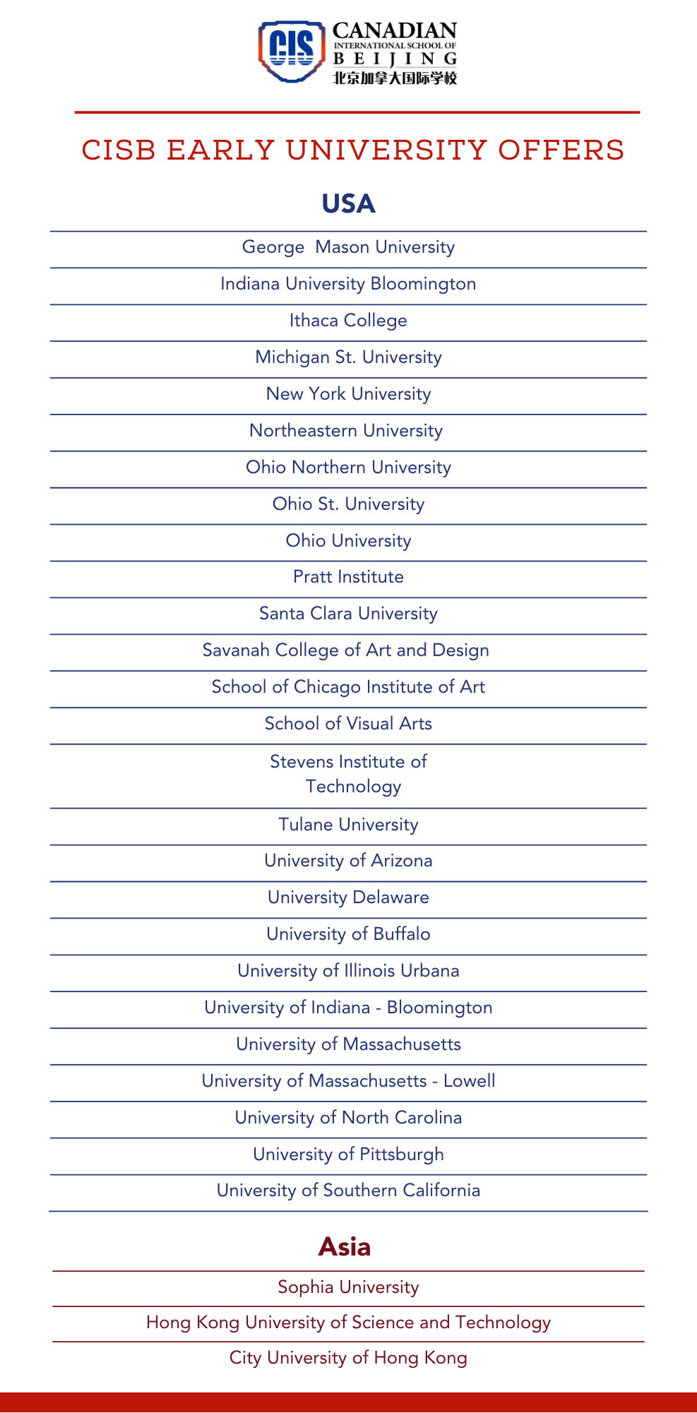 CISB 2023届学生是一群杰出的学生,他们取得了令人印象深刻的成绩,收到了世界顶级名校抛来的橄榄枝。我们相信,他们将会继续取得更大的成绩,对世界产生积极的影响。