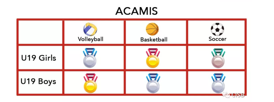 尤其是CISB针对不同年级组建的U14和U19运动队,共有上百名校运动员,参加由ISAC和ACAMIS联盟组织的不同项目比赛,(JISAC, ISAC和ACAMIS是CISB参加的三个不同的运动协会组织)。其中包含足球、越野、游泳、排球、篮球、羽毛球和田径比赛等,且CISB的运动员们在这些比赛中也取得了非常不错的成绩。