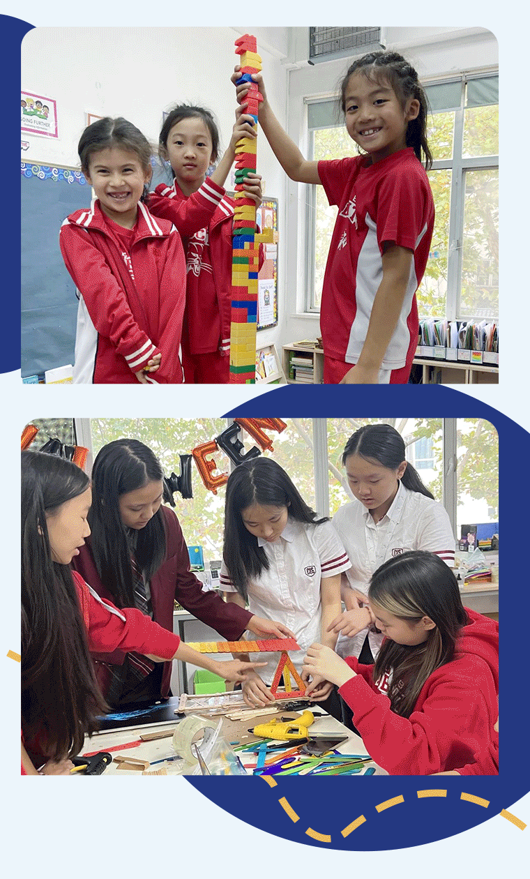 小学部低年级的学生们通过动手实践活动,发挥创造力和解决问题的能力。他们用教室里的材料建造了塔,创造了乐器,创作了歌曲,并通过绘画自己选择的图片来探索色彩理论。