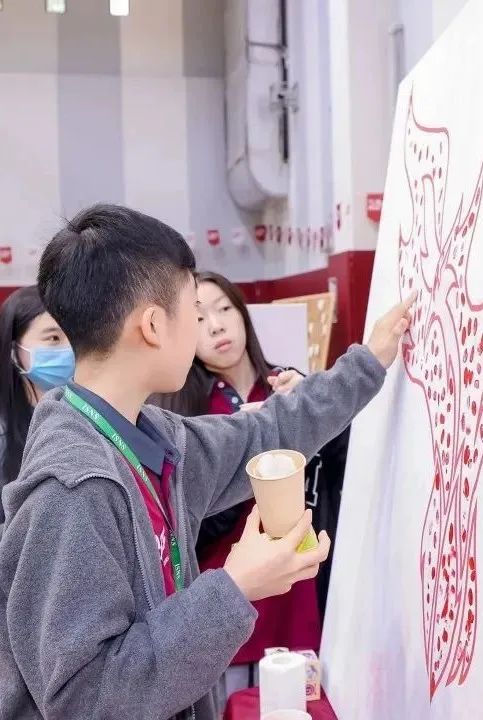 在体育馆,举行了热闹的美食节和活动摊位。学生们云集在这里,快乐地品尝食物,参与各式各样的游戏,还有超级可爱的ISNS吉祥物——小凤凰,一直在和同学们拍照,活泼地互动。大学预科DP艺术毕业展展出了各种绘画和摄影作品,吸引着人们驻足观看,其中不乏令人惊叹的艺术作品。