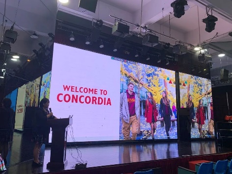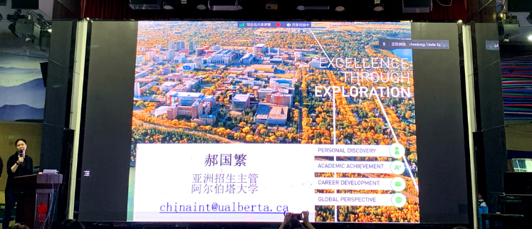 首先来到南山中加学校的是加拿大康考迪亚大学(Concordia University)的招生官季老师和阿尔伯塔大学(University of Alberta)的招生官郝老师。他们为学校高二和高三年级的学生及家长们带来了最新的大学介绍讲座。