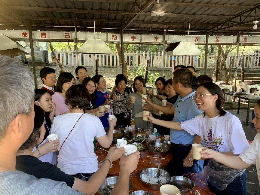 午饭时间,家长和同学们共同制作午餐,大家分组比拼,家长们也都大展身手,准备着各自家乡的特色佳肴,制作了一道道诱人的美食。最后,家长与学生一起举杯,共同庆祝这一欢快的时刻!