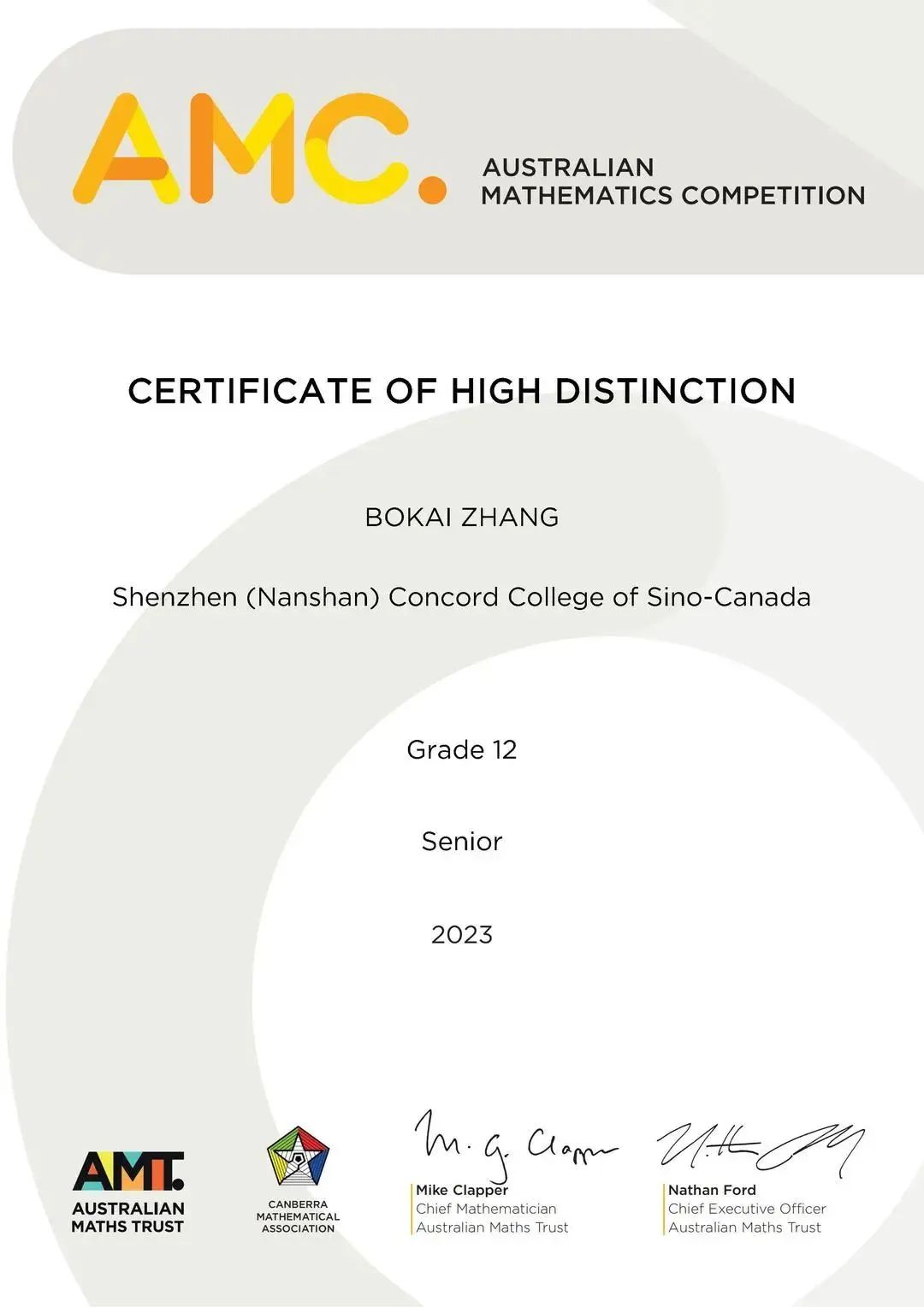 在2023年9月,深圳(南山)中加学校高二、高三的学生参加了澳大利亚AMC数学测评竞赛。在本次测评中,共66人参加考试,65人获奖,其中两人获一等奖,11人获二等奖,14人获三等奖,38人获数学技能奖。