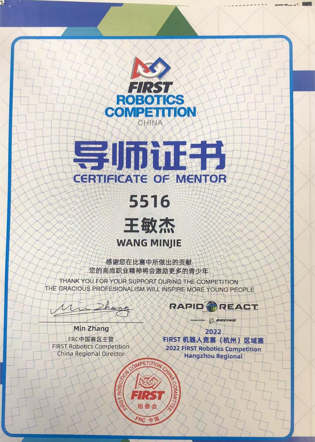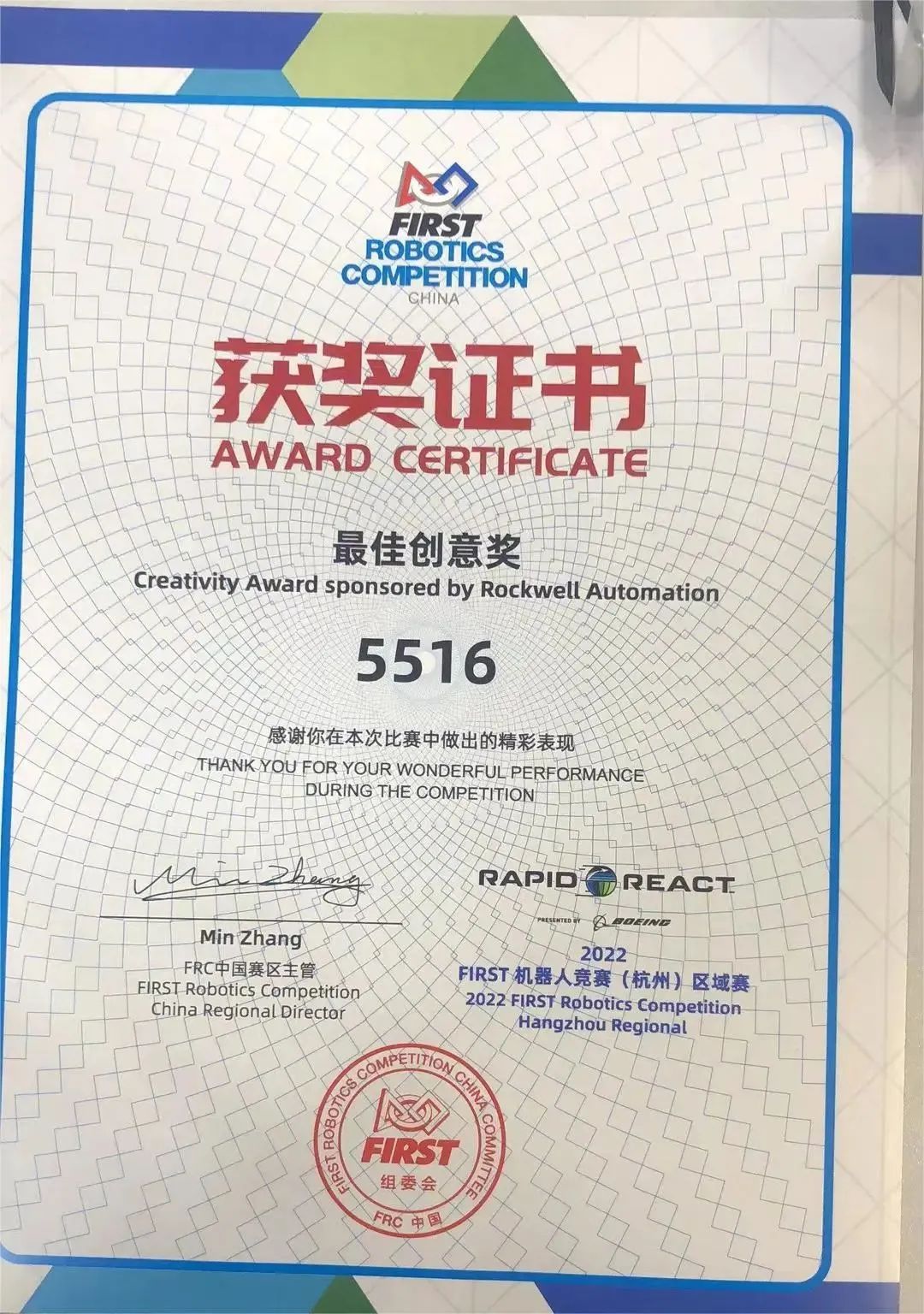 FRC机器人挑战赛是将运动的刺激性与科学技术精确融合的机器人赛事,被称作“智力上的运动会”。在2022年举办的FRC机器人挑战赛中,深圳(南山)中加学校共有18名学生参赛,并获得了最佳创意奖。同时,在FTC机器人科技挑战赛中,又有学生获得类设计奖第三名,王敏杰老师获得“导师奖”。