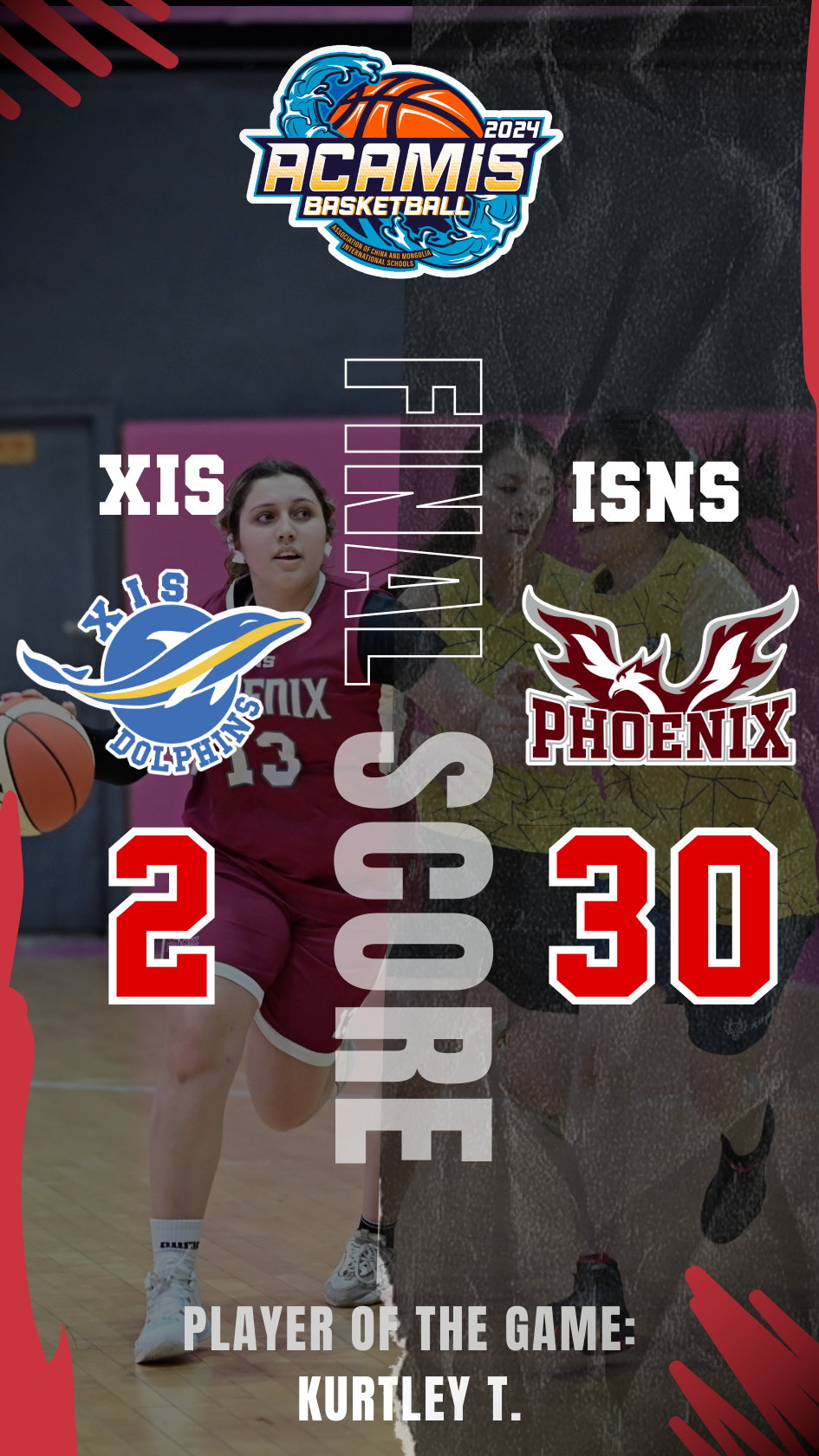 “ACAMIS篮球赛一直是我们的训练目标,我们很高兴能代表ISNS参加这次比赛。在过去的三天里,我们经历了很多兴奋时刻。我们的运动员和教练证明,体育不仅仅是关乎输赢,每一次跌倒都给了我们变得更强大的机会。我们感谢每一个参加这次活动的人,感谢你们的奉献、欢呼和支持。凤凰精神将在未来的体育赛季中延续下去。”