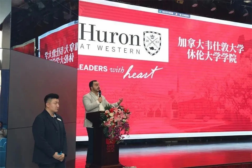 3月22日,加拿大韦仕敦休伦大学学院国际招生与国际关系副校长Mr. Moustafa Ezz及东亚区招生主管吴瑞丰先生到访深圳(南山)中加学校,为学校高三年级的同学颁发奖学金。