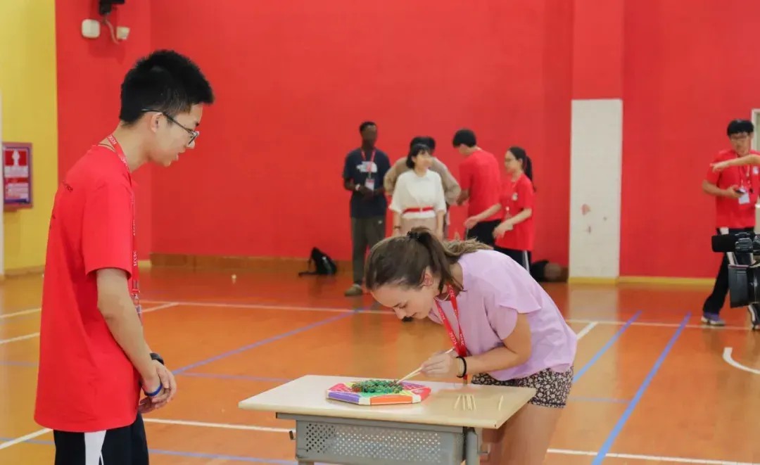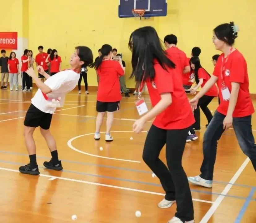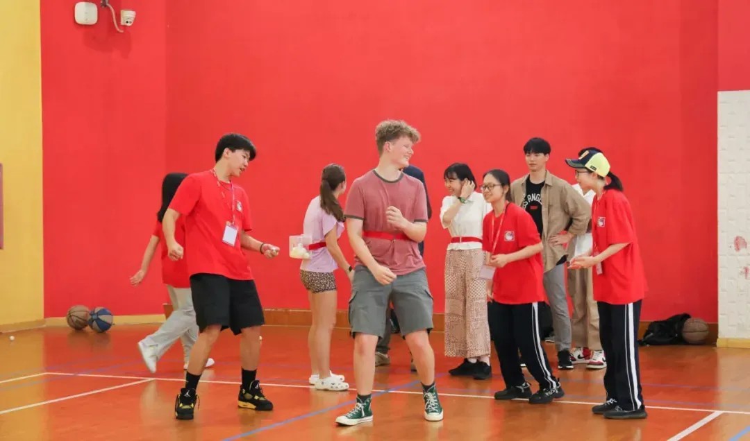 第三天的上午,南山中加的同学们在文体中心为各国代表们准备了趣味十足的团队游戏。第一项是趣味接力,组与组之间进行比拼,每组都需要完成固定的任务,然后一起全力冲刺终点。同学们为彼此加油鼓劲,落后的小组也不气馁,仍坚持完成比赛。来自不同国家的学生用自己独特的方式完成任务,为活动增添了许多新鲜感和亮点,令人惊喜万分。