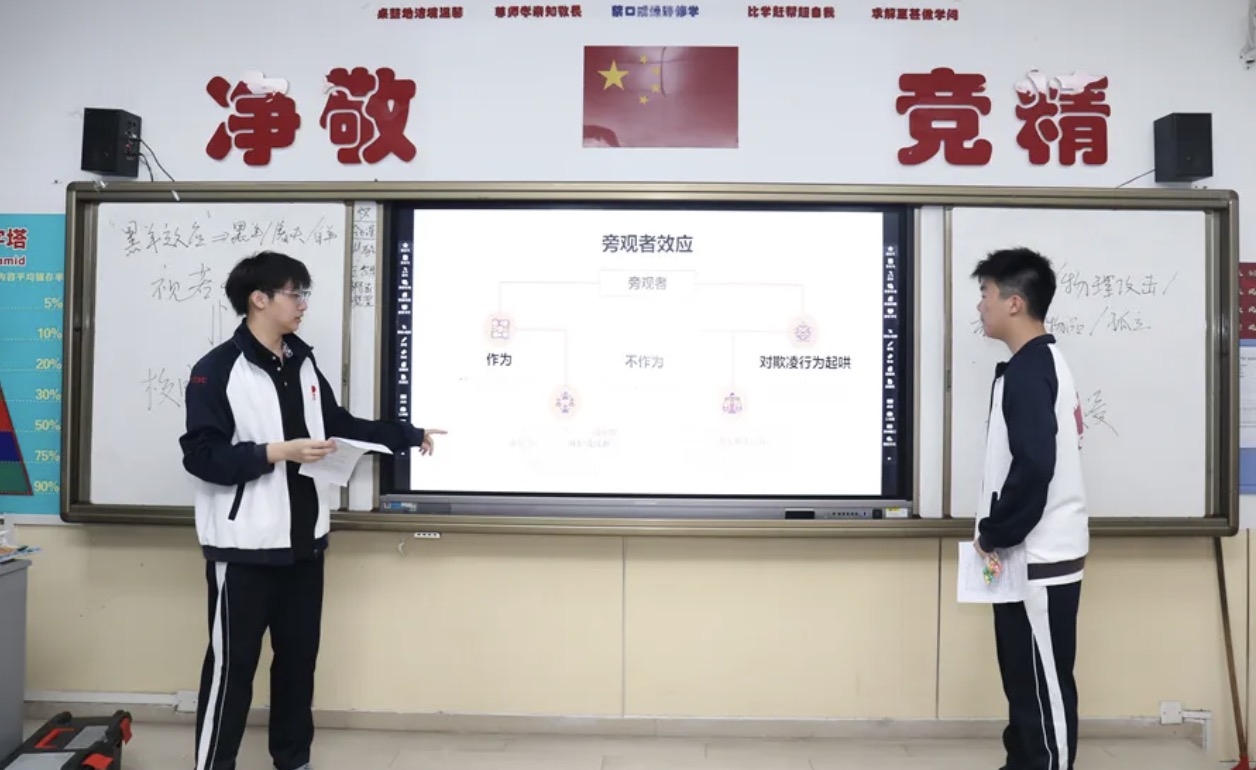 Peer Buddy的成员们将剧本杀引入课堂,学生们分组挑选角色,寻找线索,完成各自的剧本任务。在这个过程中,学生们学习到了欺凌心理学中的黑羊效应和旁观者效应,从不同角色的角度探讨如何面对和解决校园欺凌。他们明白了,当雪崩来临时,没有一片雪花是无辜的。我们不应成为校园欺凌的旁观者,更不能冷漠对待校园霸凌。让我们勇敢地对校园欺凌说“不”!