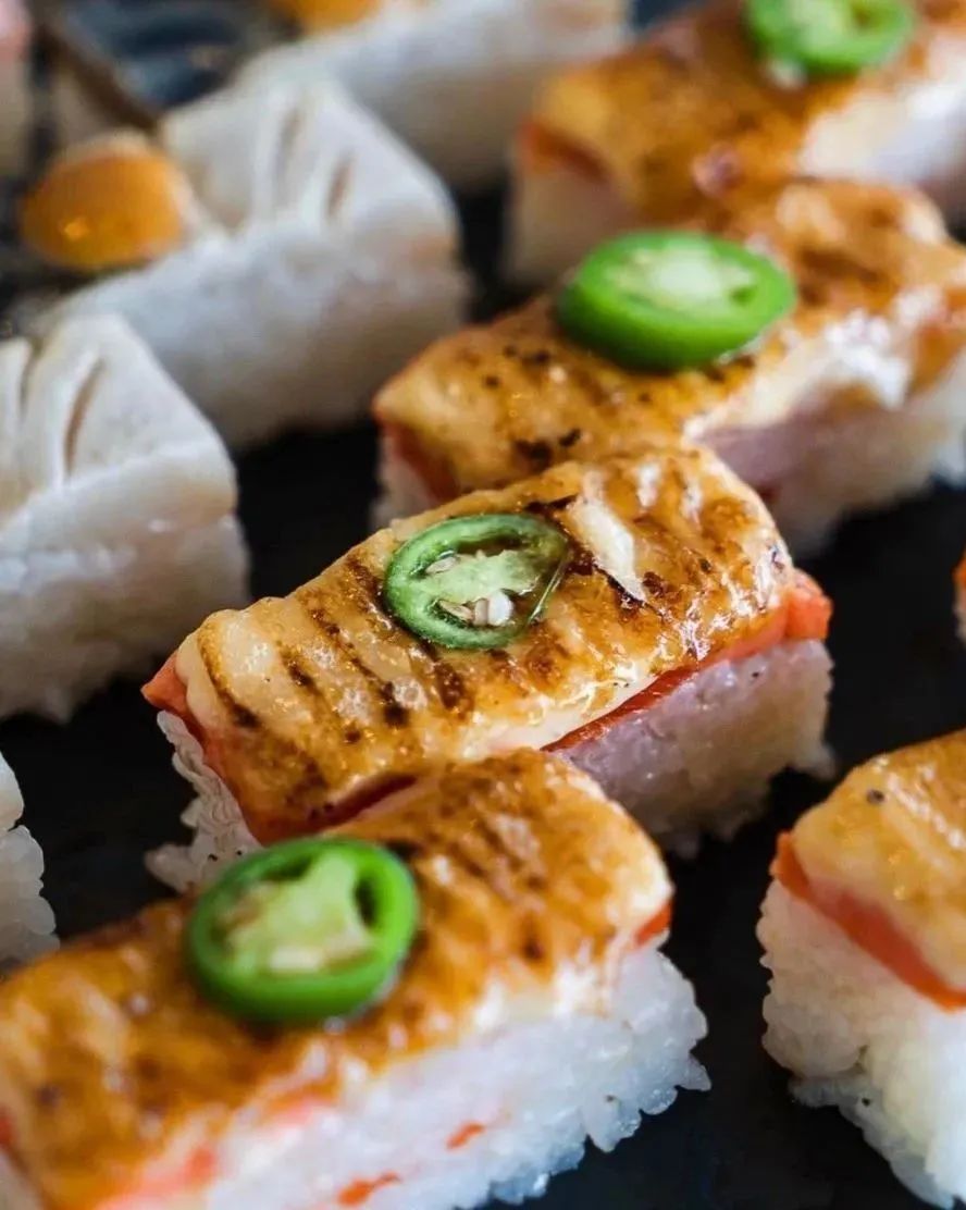 Miku最特别的就是他们的炭烧寿司,在已经切好或是捏好的寿司上面,用火枪隔着木炭烧鱼的表面,目的是为了给寿司增加一种独特的炭烧和火烤的风味。